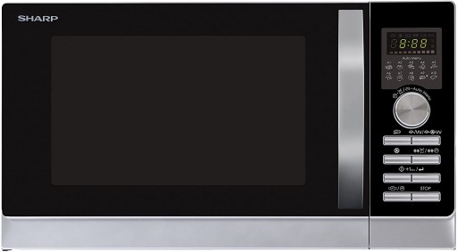 Sharp R843INW kuchenka mikrofalowa 3 w 1: tryb gorącego powietrza, grill i konwekcji/ 25 l / 800 W / grill 1000 W / konwekcja 2500 / 10 automatycznych programów / program do pizzy / metalowy talerz obrotowy (30 cm) / kolor srebrny [Klasa energetyczna A]