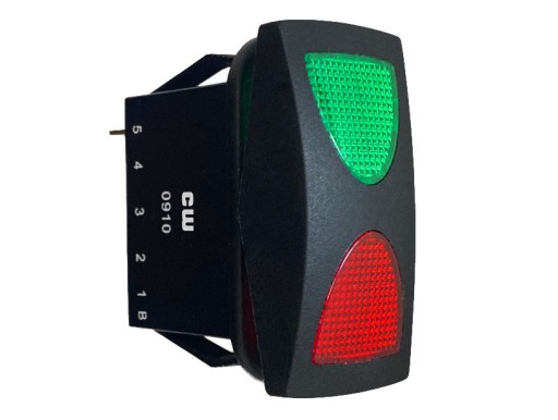 Dwupozycyjny, hermetyczny przełącznik prądowy ON-OFF-ON wykonany z nylonu. Podświetlany czerwonym i zielonym światłem LED. Montaż zatrzaskowy. W naszej ofercie również kompatybilne ramki do przełączników (kody 04009, 04010, 04011, 04012, 04013).