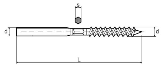 Śruba dwugwintowa zakończona z jednej strony standardowym gwintem metrycznym M6 a z drugiej wkrętem do drewna o średnicy 6mm.