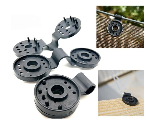 Siatka cieniująca, gęsto rozmieszczane, specjalne otwory montażowe, dzięki którym jej montaż jest bardzo prosty i szybki.