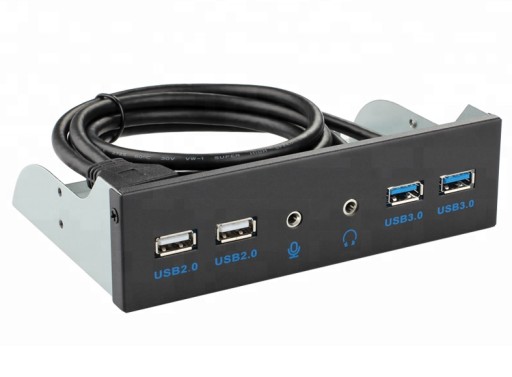 Panel przedni wewnętrzny 5.25" do 2x USB3.0 + 2x USB2.0 + 2x złącze Audio Jack 3,5mm.