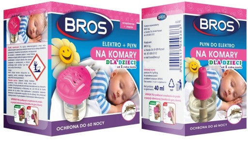 BROS ELEKTRO + 2X PŁYN NA KOMARY DLA DZIECI 60 nocy