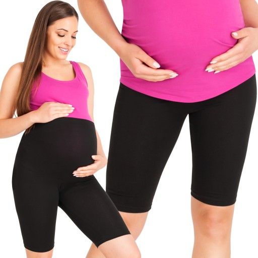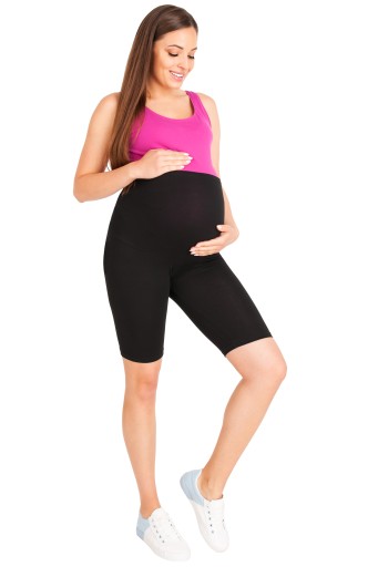 Krótkie spodenki (kolarki) z legginsowej dzianiny z panelem ochronnym na brzuszek.