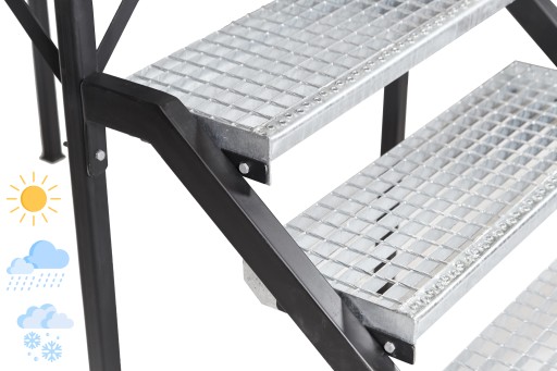Stopnie zostały ocynkowane ogniowo poprzez zanurzenie w kąpieli cynkowej o temperaturze ponad 400 stopni!