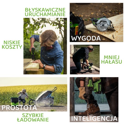 WYGODA, PROSTOTA I INTELIGENCJA W JEDNYM. Elektronarzędzia i akumulatory Greenworks to technologia jutra w Twoich rękach. Są wydajne, nowocześnie ekologiczne i wytrzymałe. Ciesz się komfortem na miarę swoich oczekiwań.