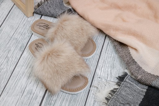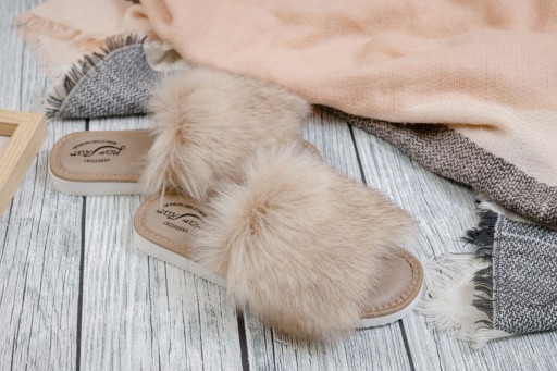 ТАПОЧКИ ЖЕНСКИЕ НА МЕХЕ, БЕЖЕВАЯ КОЖА НОВИНКА