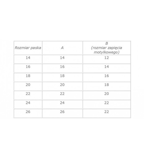 Rozmiar zapięcia dobieramy mierząc wymiar B przy pasku