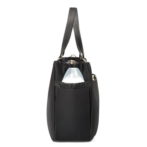 Torba wyposażona jest w smycz na klucze, która ułatwia odnalezienie ich w ciągu jednej chwili. Znajdziesz w niej także kieszeń szybkiego dostępu zapinaną na zamek, w której można umieścić telefon. Zewnętrzne boczne kieszenie z gumkami służą do wygodnego przechowywania butelek z jedzeniem i piciem dla dziecka. Natomiast funkcja termoizolacyjna kieszeni umieszczonej wewnątrz torby umożliwia utrzymanie pożądanej temperatury ciepłego pokarmu.