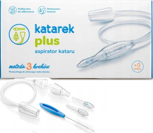 Aspirator Katarek Plus podłączany jest do domowego odkurzacza o mocy 800–1800W. Zredukowana, jednostajna siła ssąca sprawia, iż jest on znacznie skuteczniejszy niż ustne aspiratory, które usuwają jedynie ¼ wydzieliny, nie wspominając już o tradycyjnych gruszkach.