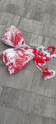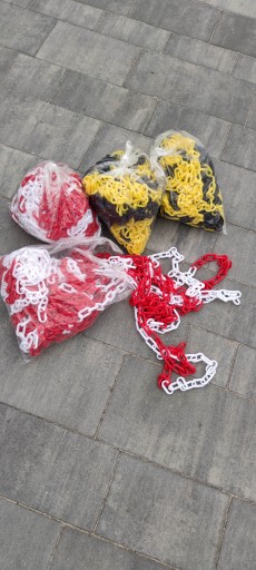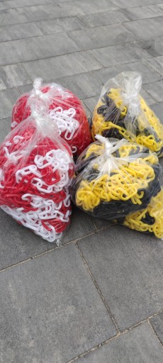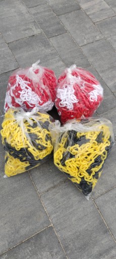 Łańcuchy plastikowe na bębnie wykonane zostały z wysokiej jakości polietylenu (PE) dzięki czemu odporne są na zmienne warunki atmosferyczne, można je łączyć ze słupkami oraz pachołkami.