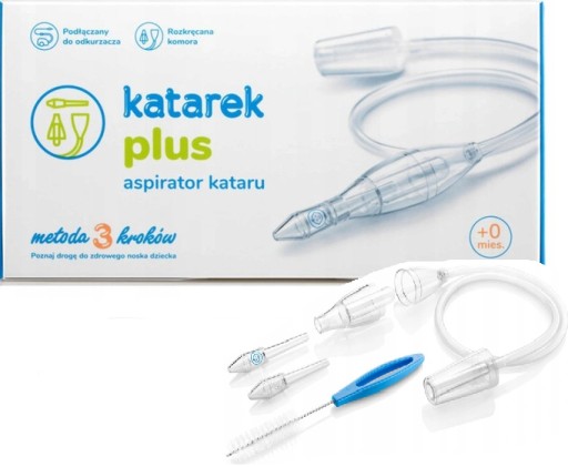 Aspirator Katarek Plus podłączany jest do domowego odkurzacza o mocy 800–1800W. Zredukowana, jednostajna siła ssąca sprawia, iż jest on znacznie skuteczniejszy niż ustne aspiratory, które usuwają jedynie ¼ wydzieliny, nie wspominając już o tradycyjnych gruszkach.