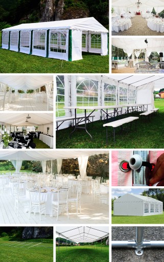 Poszycie sprawdzi się świetnie podczas organizacji każdego plenerowego eventu, bankietu czy festynu. Stanowi idealną ochronę cateringu oraz zaproszonych gości podczas wesela, komunii, pikników oraz innych imprez okolicznościowych. Swoje zastosowanie znajdzie także jako altana, namiot ogrodowy bądź tarasowy. Namiot można używać również jako powierzchnie handlowe oraz dodatkowe miejsce w swoim lokalu.