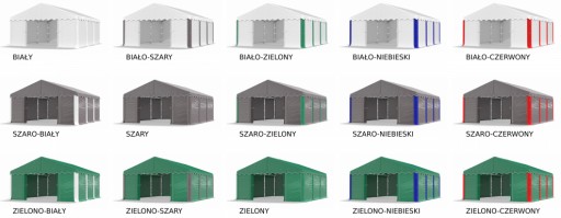 biały, biało-szary, biało-zielony, biało-niebieski, biało-czerwony, szaro-biały, szary, szaro-zielony, szaro-niebieski, szaro-czerwony, zielono-biały, zielono-szary, zielony, zielono-niebieski, zielono-czerwony