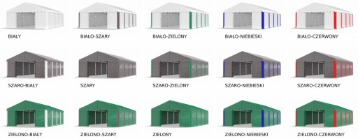 biały, biało-szary, biało-zielony, biało-niebieski, biało-czerwony, szaro-biały, szary, szaro-zielony, szaro-niebieski, szaro-czerwony, zielono-biały, zielono-szary, zielony, zielono-niebieski, zielono-czerwony