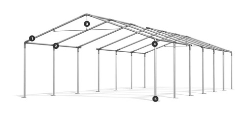 Namioty składane są z modułów o długości 2, 4, 6, 8, 10 lub 12 m oraz 1, 2-metrowych przedłużeń.