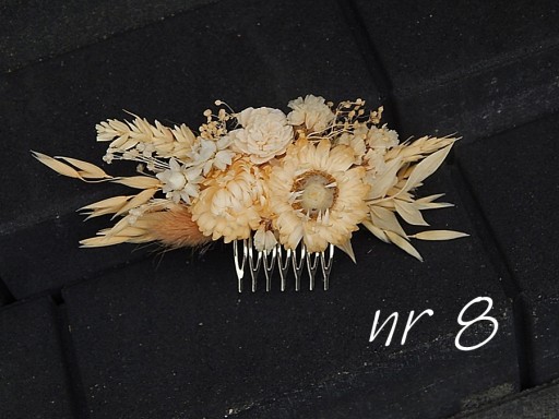 wyjątkowy grzebyk do włosów wykonany z delikatnych naturalnych suszonych roślin i kwiatów.