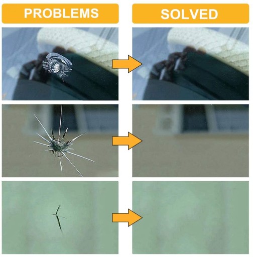 Zestaw naprawczy pozwala samodzielnie i w prosty sposób poradzić sobie z pęknięciami i odpryskami na szybie twojego samochodu. Produkt zmniejsza naprężenie w miejscu pęknięcia wypełniając je specjalną mieszanką żywicy epoksydowej. Dzięki niej rysy i pęknięcia na szybie stają się prawie niewidoczne.
