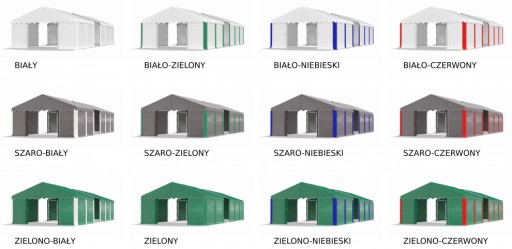 biały, biało-zielony, biało-niebieski, biało-czerwony, szaro-biały, szaro-zielony, szaro-niebieski, szaro-czerwony, zielono-biały, zielony, zielono-niebieski, zielono-czerwony