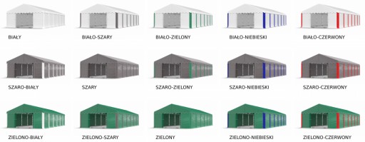 biały, biało-szary, biało-zielony, biało-niebieski, biało-czerwony, szaro-biały, szary, szaro-zielony, szaro-niebieski, szaro-czerwony, zielono-biały, zielono-szary, zielony, zielono-niebieski, zielono-czerwony