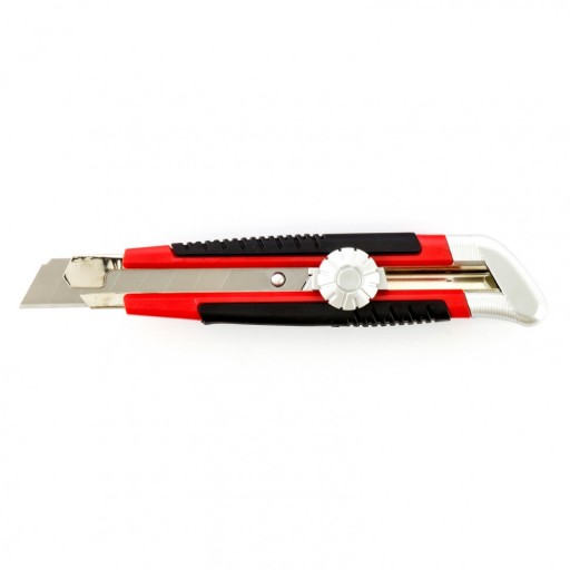 - Narzędzie jest wyposażone w blokadę śrubową, która bezpiecznie utrzymuje wysuwane ostrze w ustawionej pozycji.