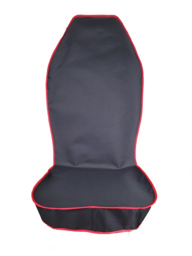 Pokrowiec ochronny na fotel samochodowy z czerwonymi obszyciami. Zabezpiecza siedzenie przed zabrudzeniem lub uszkodzeniem. Pokrowiec wykonany z wodoodpornego materiału codura, dzięki któremu jest łatwy w utrzymaniu czystości.