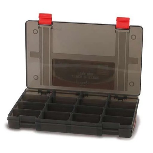Doskonały sposób na uporządkowanie i przechowywanie przynęt. Pudełko wykonane z wytrzymałego plastiku, posiada regulowane przegródki. Pokrywkę i zamknięcie można również zdejmować, nie są przytwierdzone i nie mogą się zerwać.