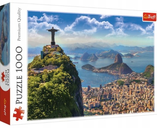 Puzzle 1000 elementów z widokiem na Rio de Janeiro. Po ułożeniu powstanie obrazek o wymiarach 68x48 cm. Wysoką jakość, nasycenie kolorów i bezpieczeństwo układania zapewnia kalandrowany papier odbijający światło, pokryty ekologicznymi farbami spożywczymi.