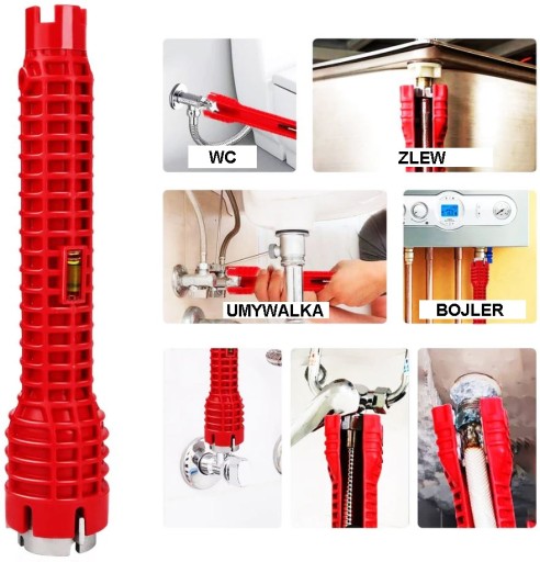 Za pomocą tego narzędzia można montować lub demontować podłączenia wody do baterii umywalkowych, wannowych, kuchennych, WC, a także same baterie.