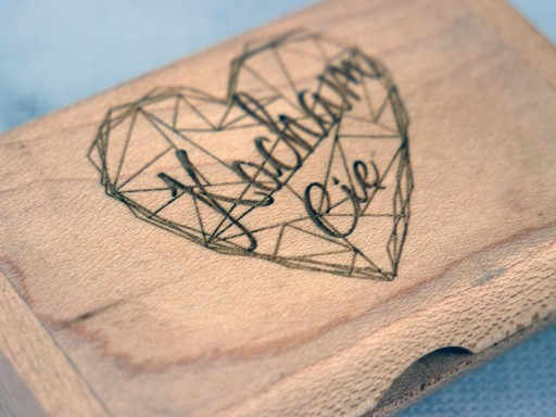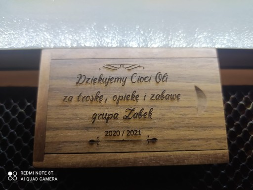 Pamięć USB jak i pudełko wykonane są z drewna w kolorze ciemny orzech.