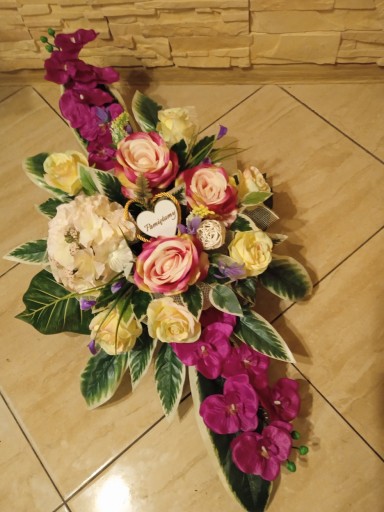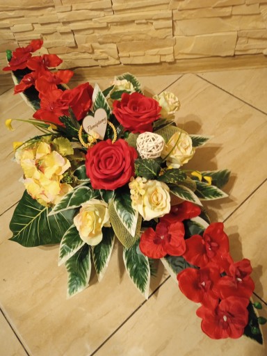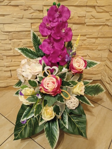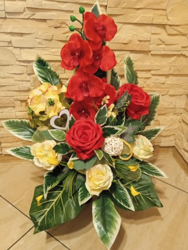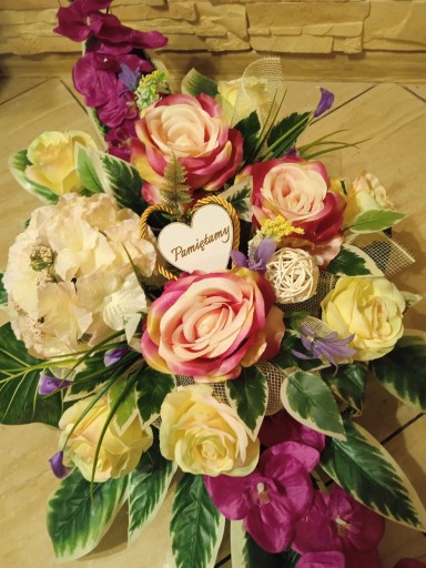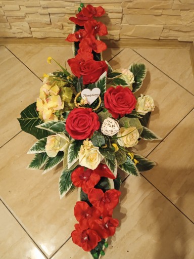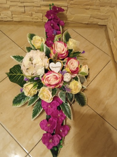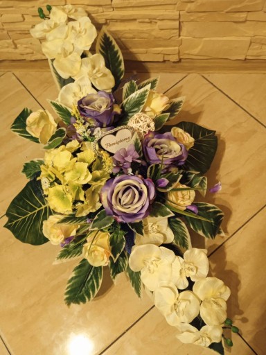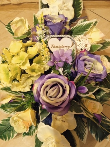 (cena dotyczy TYLKO kompozycji do postawinia na grobie, natomiast bukietu do wazonu dostępny jest na osobnej aukcji)