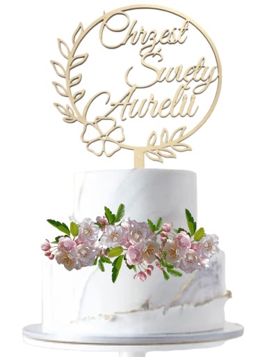 TOPPER NA TORT CHRZEST ŚWIĘTY DREWNIANY