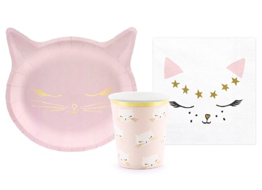 ZESTAW TALERZYKI I KUBECZKI SERWETKI KOTEK