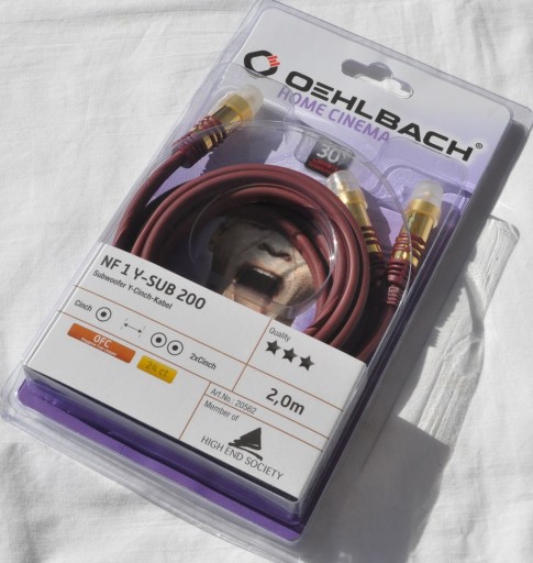 Oehlbach NF-Y-SUB to przewód typu Y przeznaczony do połączenia subwoofera aktywnego z systemem kina domowego. Przewodnik o dużej średnicy w konfiguracji współosiowej zapewnia znakomitą transmisję sygnałów audio o niskiej częstotliwości. Zastosowanie miedzi beztlenowej OFC gwarantuje wyjątkowo precyzyjne i silne odwzorowanie basu. Dwuwarstwowy ekran z miedzianego oplotu skutecznie eliminuje wszelkie zakłócenia i zapewnia najwyższą jakość transmisji. Platerowane 24k złotem doskonale wykonane wtyki zapewniają optymalny i solidny kontakt elektryczny z gniazdem oraz wysoką wytrzymałość.