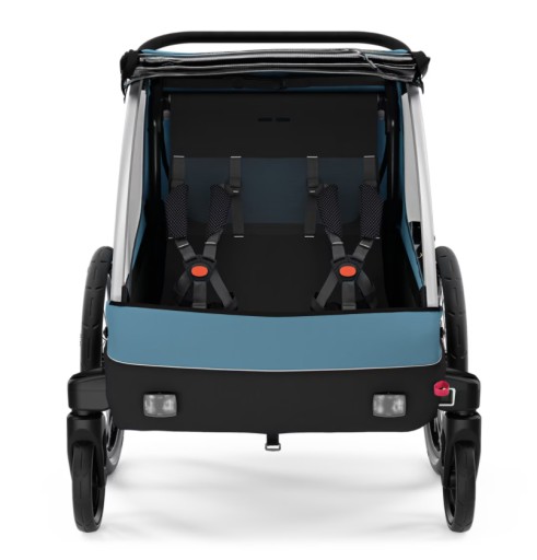Zapakuj rodzinę i ruszaj przed siebie z Thule Courier — bezpieczną i komfortową przyczepką rowerową dla maksymalnie dwojga dzieci.