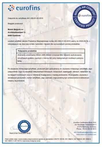 Wydruk jednostronny full kolor na oryginalnych tuszach UMS (Universal Mild Solwent) z certyfikatami.
