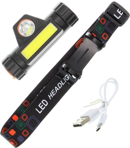 Latarka Czołowa z 2 źródłami światła LED CREE i COB 2W + Kabel do Ładowarki i Akumulator