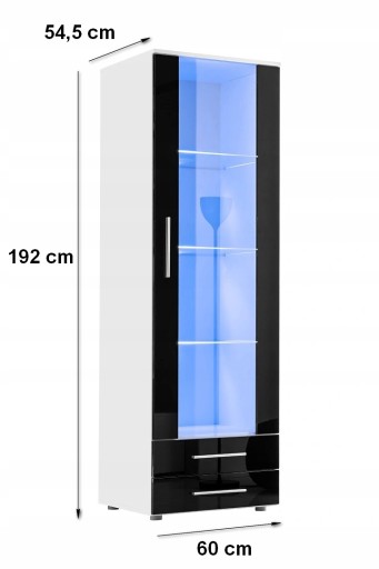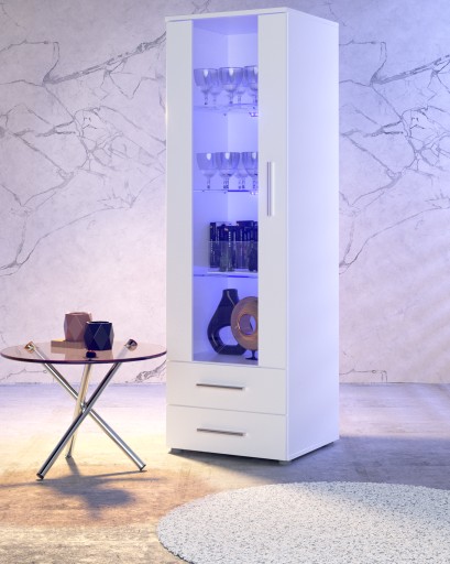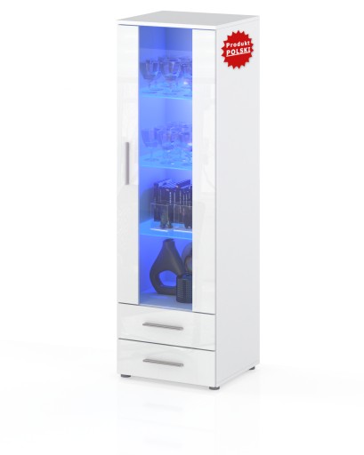 WITRYNA STOJĄCA KOMODA SŁUPEK Z SZYBĄ BIAŁY POŁYSK LED 60 cm
