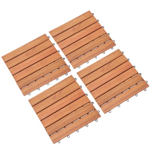 Płytki drewniane mają system wtykowy, dzięki czemu można je bardzo szybko i łatwo układać bez użycia narzędzi.