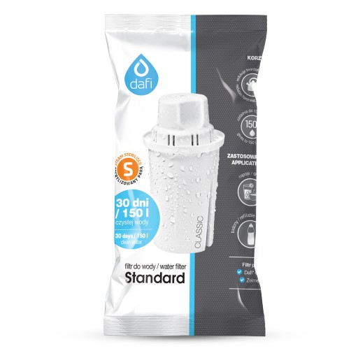 - Filtr Dafi Classic zapewnia do 150 litrów krystalicznie czystej wody.