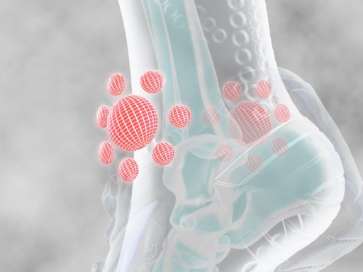 Wypustki 3D·DOTS w kształcie słoneczka w obrębie kostki chronią ją przed uderzeniami i podrażnieniami tego wrażliwego obszaru.