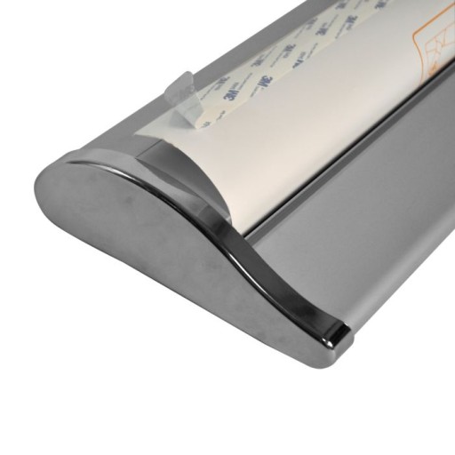 Przenośny i stabilny system prezentacji grafiki. Łatwy i szybki w montażu. Baner wyposażono w specjalny mechanizm roll-up, który umożliwia błyskawiczne złożenie i rozłożenie grafiki. Reklama zwijana jest do wnętrza podstawy. Produkt wyposażony jest również w górną listwę. Stojak dostępny w kolorze srebrnym, wykonany z aluminium.