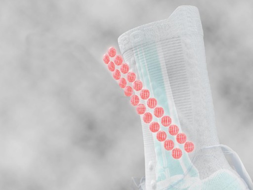 Wypustki 3D·DOTS w kształcie słoneczka w obrębie kostki chronią ją przed uderzeniami i podrażnieniami tego wrażliwego obszaru.