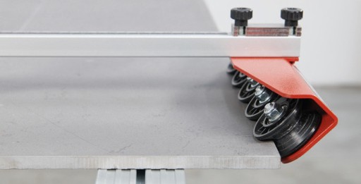 - Do wykonania cięcia można użyć urządzenia umieszczając kółka na krawędzi płytki (do cięć równoległych) lub alternatywnie na krawędzi stołu warsztatowego (do cięć ukośnych)