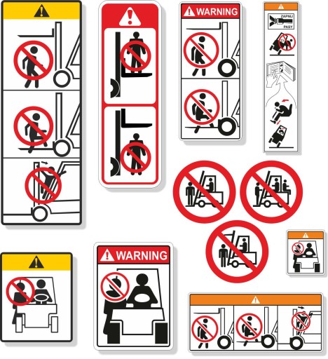 Наклейки с ПРЕДУПРЕЖДЕНИЯМИ по охране труда и технике безопасности для ВИЛОЧНЫХ ПОГРУЗЧИКОВ