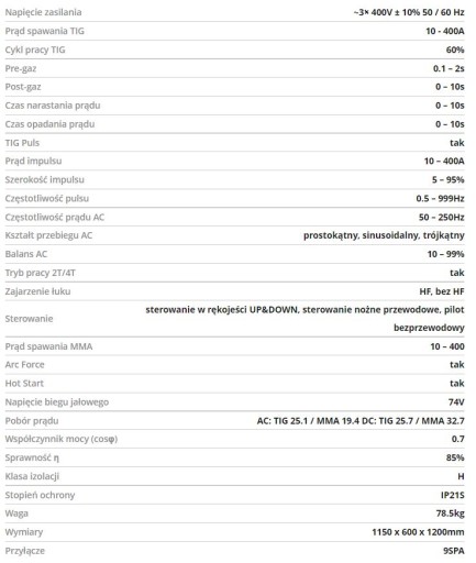 Instrukcja obsługi w języku polskim spawarki Spartus TIG 401PW ACDC