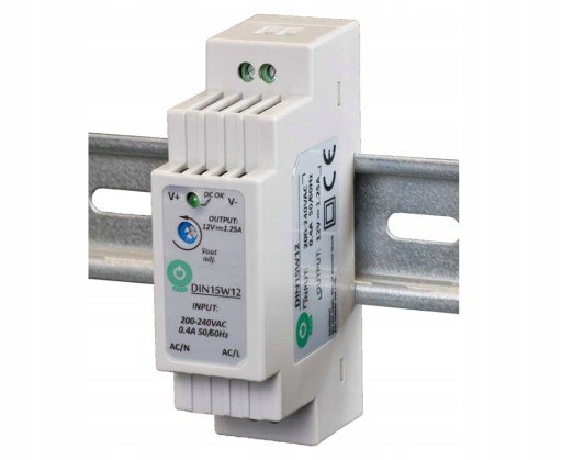 ZASILACZ DO LED/DOMOFON NA SZYNĘ DIN POS 0.4A 15W 12V
