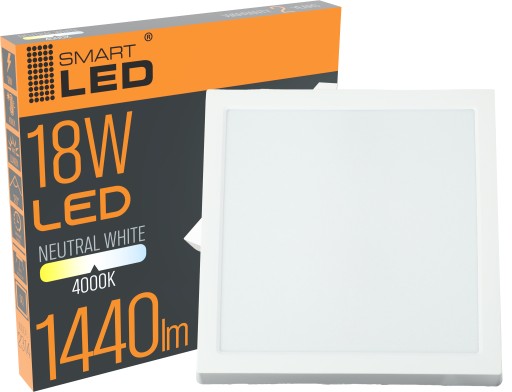 Kwadratowy panel natynkowy LED o mocy 18W najnowszej drugiej generacji cienką białą matową ramką malowaną proszkowo. W komplecie znajdują się uchwyty montażowe oraz zasilacz. Panele Led slim idealnie nadają się do oświetlenia każdego rodzaju pomieszczeń tj.: mieszkań, domów, biur oraz sklepów.Zastosowany zasilacz o napięciu 85-265V jest odporny na skoki napięcia w sieci a sam Panel pracuje ciągłym światłem bez efektu migotania.Panel wykonany jest z aluminium i klosza PVC.