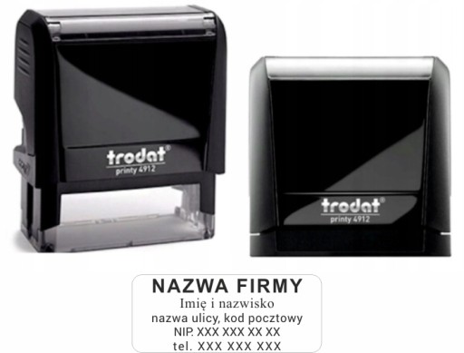 to mała pieczątka firmowa, która mieści takie dane jak:
