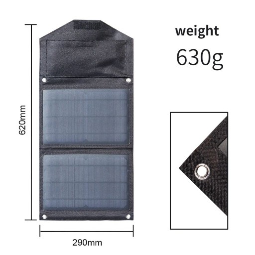 Wodoodporność: tak (Panel słoneczny i zewnętrzna tkanina są wodoodporne, ale należy pamiętać, że interfejs USB nie jest wodoodporny, proszę zwrócić uwagę na ochronę. )