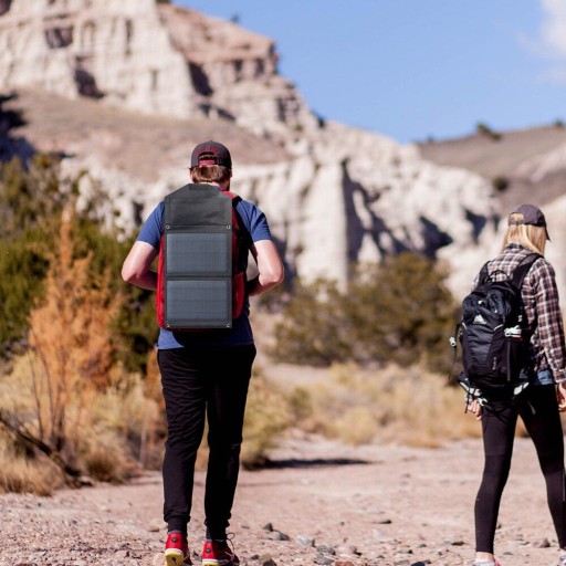 Przenośna, składany pokrowiec i lekka sprawia, że bardzo łatwo zapakować ją do plecaka. Widoczne pętle montażowe rozmieszczone są na krawędzi panelu w celu łatwego mocowania do plecaków, na rower, namiot itp.